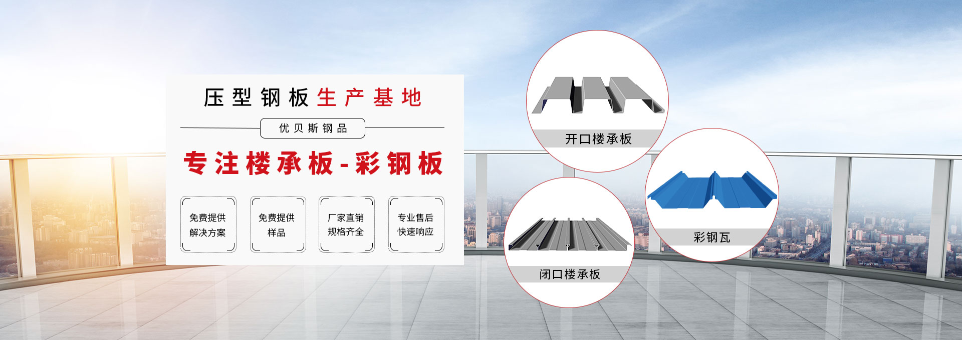 無錫優(yōu)貝斯鋼品有限公司主要生產(chǎn):樓承板,鋼承板,免澆筑樓承板,壓型鋼板,彩鋼板,閉口樓承板,開口樓承板,縮口樓承板價格優(yōu)惠及相關的鋼結構輔材。 優(yōu)貝斯始終追蹤并處于鋼結構建筑及其圍護系統(tǒng)技術的發(fā)展前沿,預制金屬屋墻板面和樓承板系統(tǒng)。優(yōu)貝斯擁有的技術和豐富實踐一直為客戶提供質(zhì)量的產(chǎn)品、鋼建筑系統(tǒng)解決方案和貼心的服務。